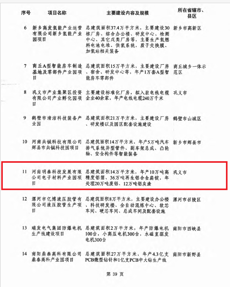 近日,河南省發(fā)改委發(fā)布2021年河南省重點(diǎn)建設(shè)項(xiàng)目名單,名單共列項(xiàng)目1371個(gè),總投資4.4萬億元,年度計(jì)劃完成投資1.1萬億元,涵蓋新型基礎(chǔ)設(shè)施、新型城鎮(zhèn)化、重大基礎(chǔ)設(shè)施、產(chǎn)業(yè)結(jié)構(gòu)優(yōu)化升級(jí)、創(chuàng)新驅(qū)動(dòng)、生態(tài)環(huán)保、社會(huì)民生七大領(lǐng)域。其中,明泰科技電子材料產(chǎn)業(yè)園項(xiàng)目榜上有名。